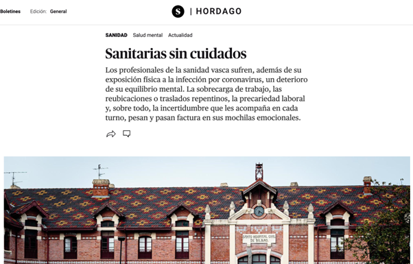 El 16 de febrero de 2021, el medio digital El Salto publicó el reportaje “Sanitarias sin cuidados”, centrado en el impacto emocional y las condiciones laborales de las profesionales sanitarias en el contexto de la pandemia.