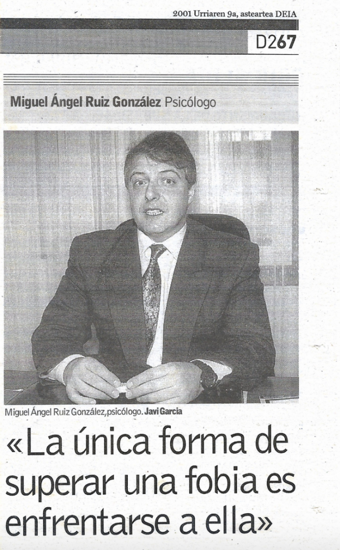 El diario DEIA publica una entrevista a Miguel Ángel Ruiz González, psicólogo, en la que aborda el tratamiento de las fobias y el papel de la exposición como elemento central en su abordaje.